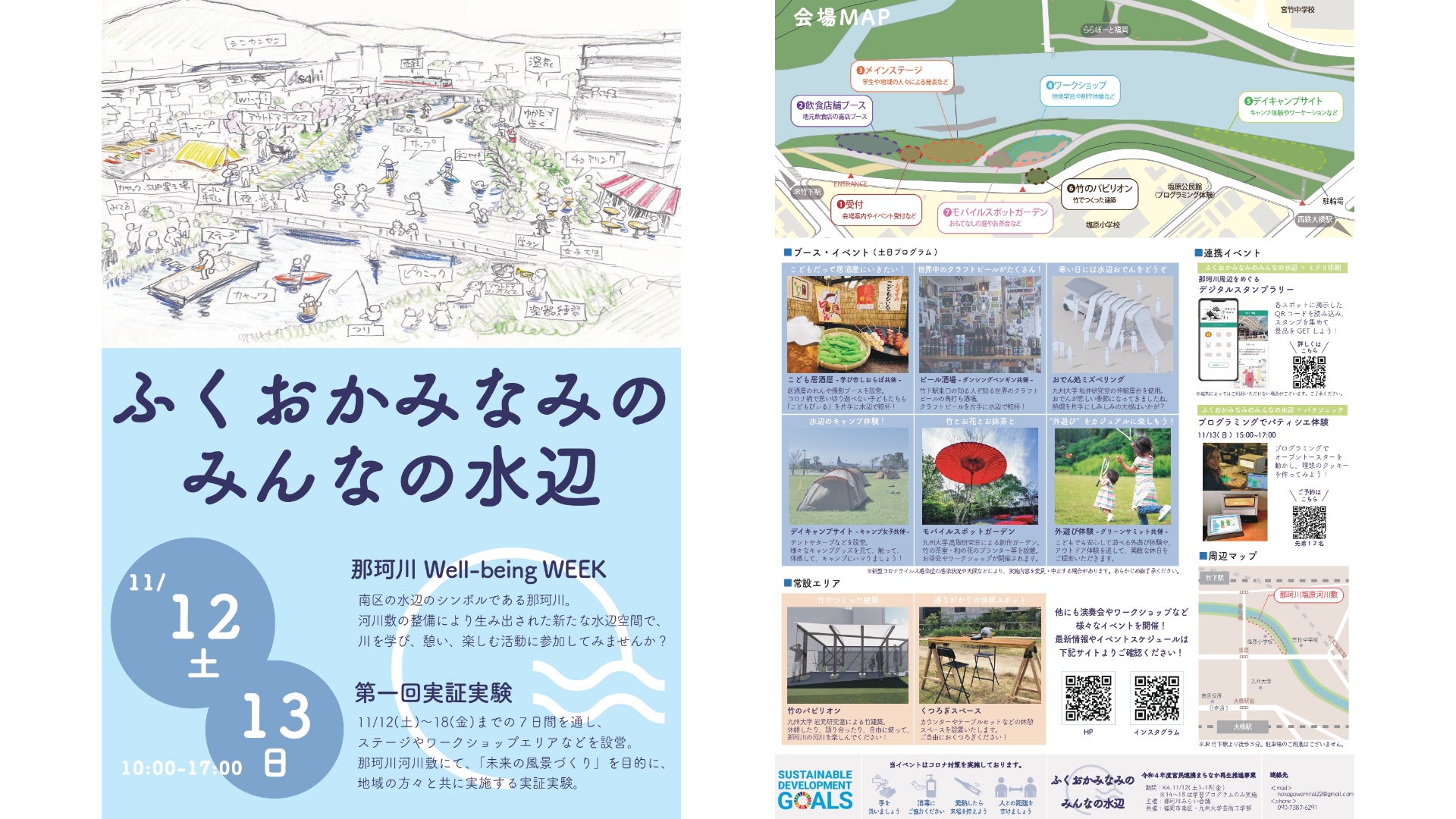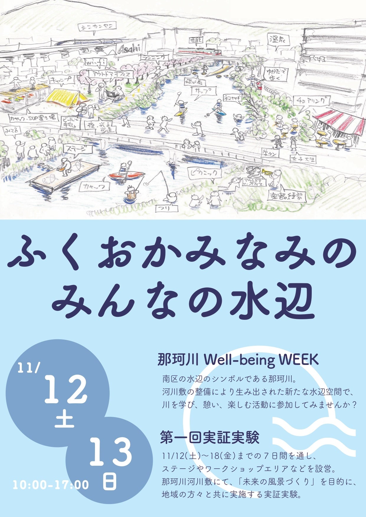 福岡市南区の那珂川に新設された河川敷スペースにて、川を学び、憩い、楽しむ活動を提案します。