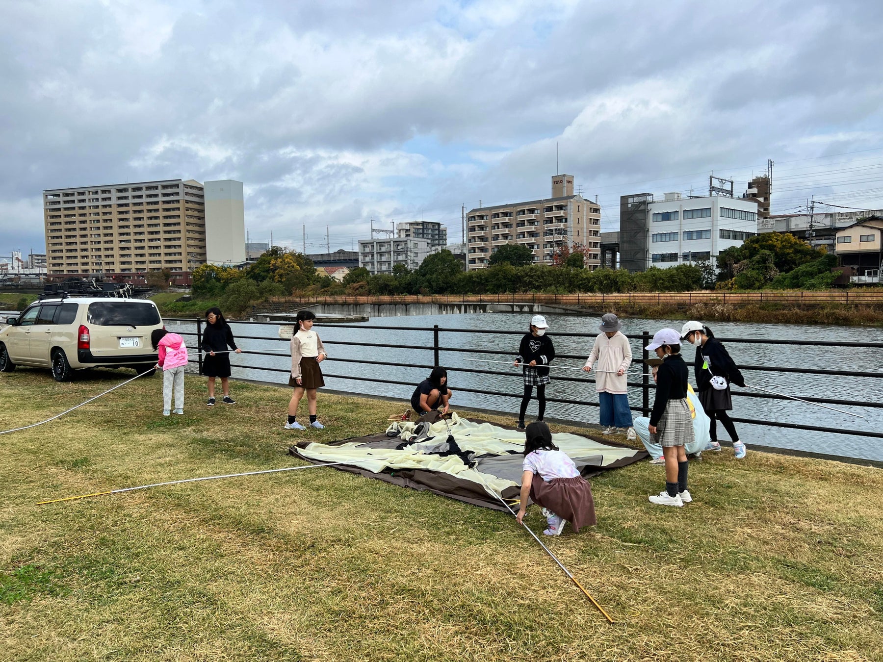 那珂川みらい会議主催、第一回実証実験「ふくおかみなみのみんなの水辺」のイベントに出展。子供たちとテント設営ワークショップを開催しました。