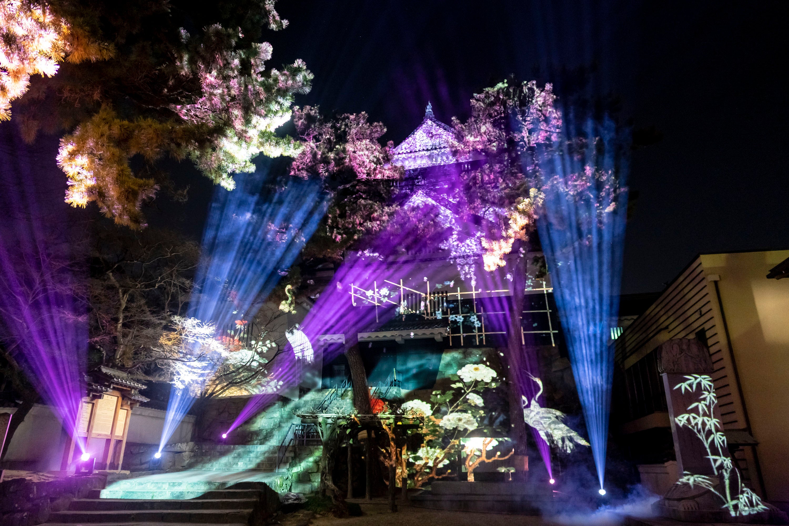 【内容】 プロジェクションマッピングと連動して、岡崎公園内のさまざまなスポットをデジタルライトアップで彩ります。