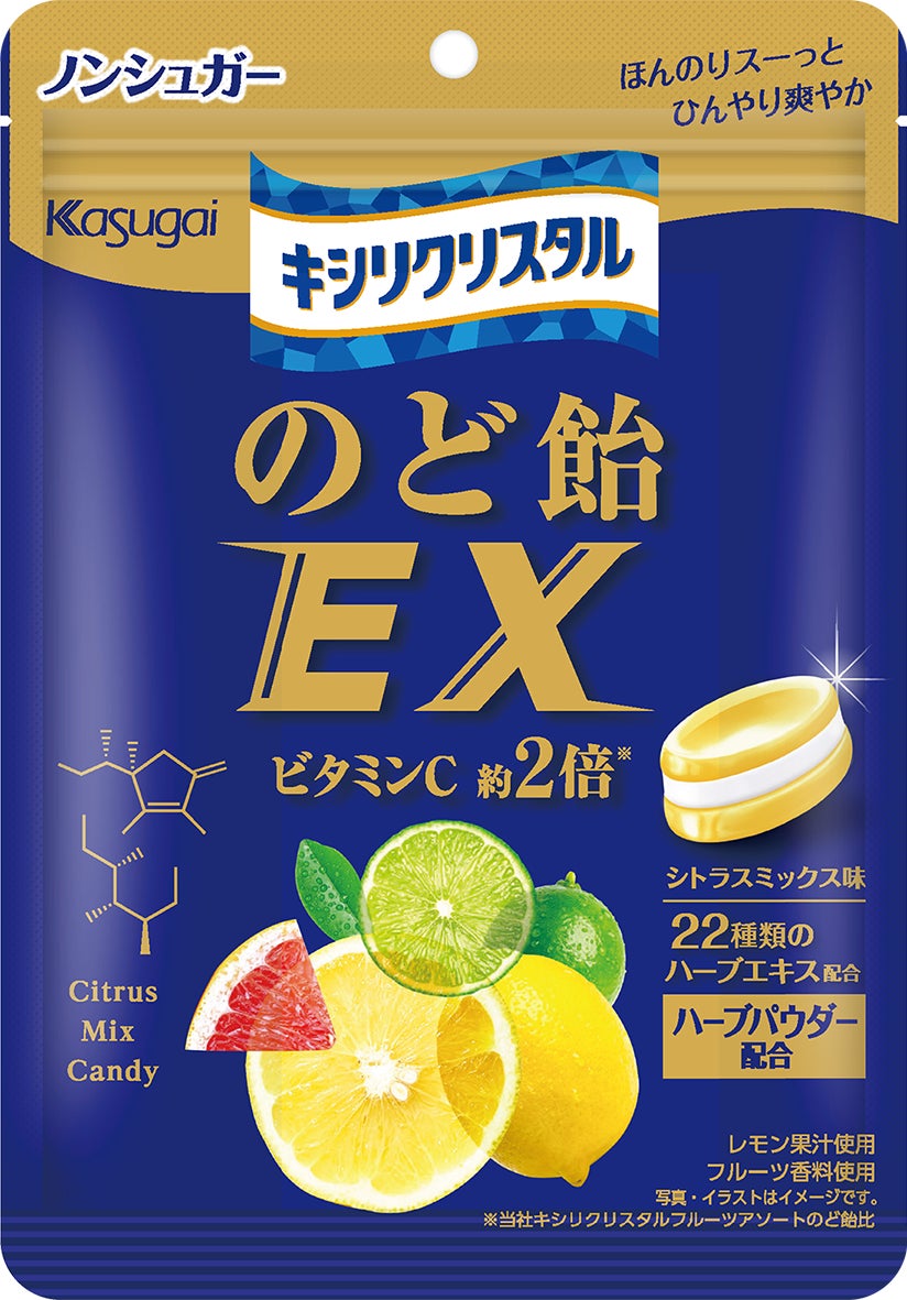 春日井製菓株式会社(本社:愛知県名古屋市西区、代表取締役社長:春日井大介)は、「キシリクリスタル」にプラスの成分を配合した新シリーズ「キシリクリスタルのど飴EX ビタミンC シトラスミックス味」を、2026年2月9日(月)より全国の一部コンビニエンスストアで発売いたします。