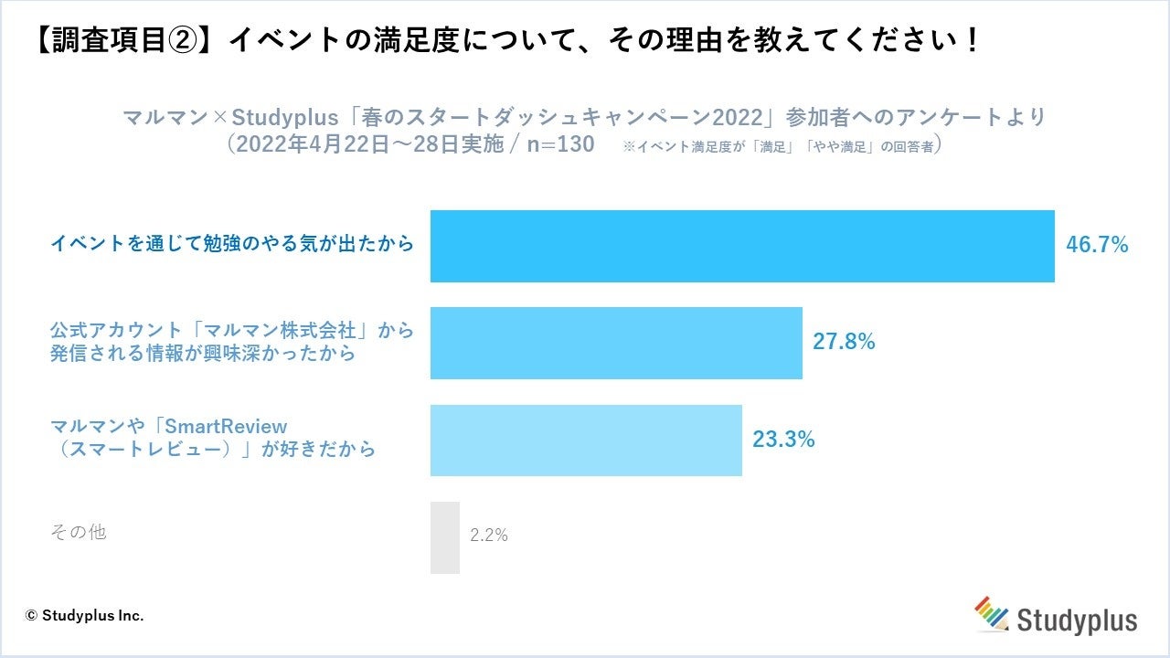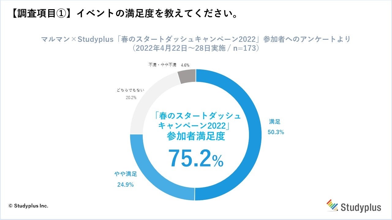 スタディプラス株式会社(本社:東京都千代田区、代表取締役:廣瀬高志)は、マルマン株式会社(本社:東京都中野区、代表取締役社長:井口泰寛、以下マルマン)とのコラボイベント、マルマン×Studyplus「春のスタートダッシュキャンペーン2022」を、4月11日(月)から4月17日(日)までの期間限定で実施、キャンペーン終了後の調査結果をまとめましたので、ご報告します。