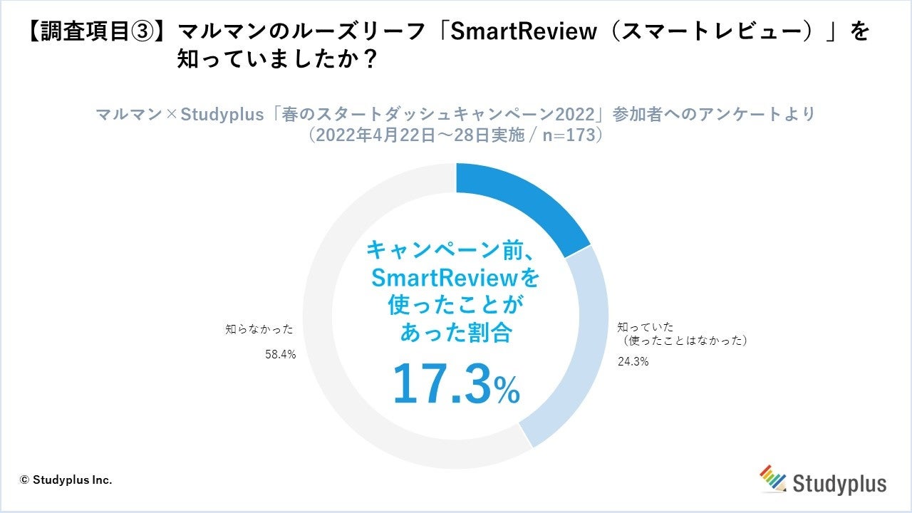 【調査項目③】マルマンのルーズリーフ「SmartReview(スマートレビュー)」を知っていましたか? ※n=173