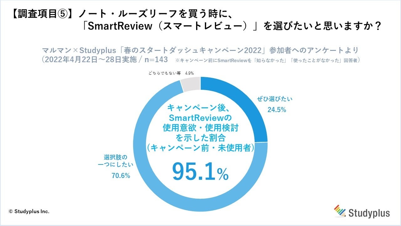 【調査項目⑤】ノート・ルーズリーフを買う時に、「SmartReview(スマートレビュー)」を選びたいと思いますか? ※調査項目③で「知らなかった」「使ったことはなかった」と回答したユーザー向け、n=143