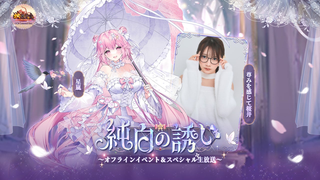 C4 Connect株式会社(本社:東京都渋谷区)は、現在サービス中のスマートフォンアプリ、美少女RPGゲーム『放置少女〜百花繚乱の萌姫たち~』(以下、『放置少女』)が6月14日(日)16時より「純白の誘い オフラインイベント&スペシャル生放送~最愛の人はすぐそばに~」と題した生放送を配信することをお知らせいたします。