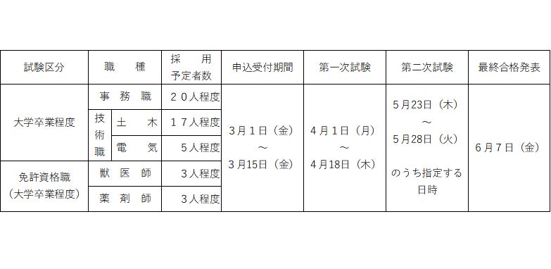試験の詳細は、熊本市職員採用情報サイトに掲載している「試験案内」を御確認ください。
