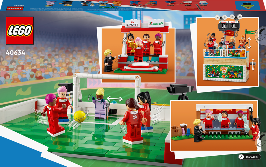 キャンペーンを記念した「レゴ®フィールドのヒーローたち」は、サッカーの強いコミュニティ意識とチームスピリットを生き生きと表現し、レゴ®ブロックで遊ぶことを通じて「美しいゲーム」への愛を探求してほしいとの想いが込められています。鮮やかな「フットボール/サッカー」スタジアムセットには、選手5人、サポーター8人、コーチ1人、審判1人の15体のミニフィギュアがラインナップされているので、あらゆる年代のファンが、サッカーヒーローのミニフィギュアと一緒にキックオフしたり、スタンドから応援したり、優勝表彰台で勝利を祝うことができます。さらに、VARステーションやレフェリーも搭載しており、本物のフィールドさながらにプレイヤー気分を味わうことができます。