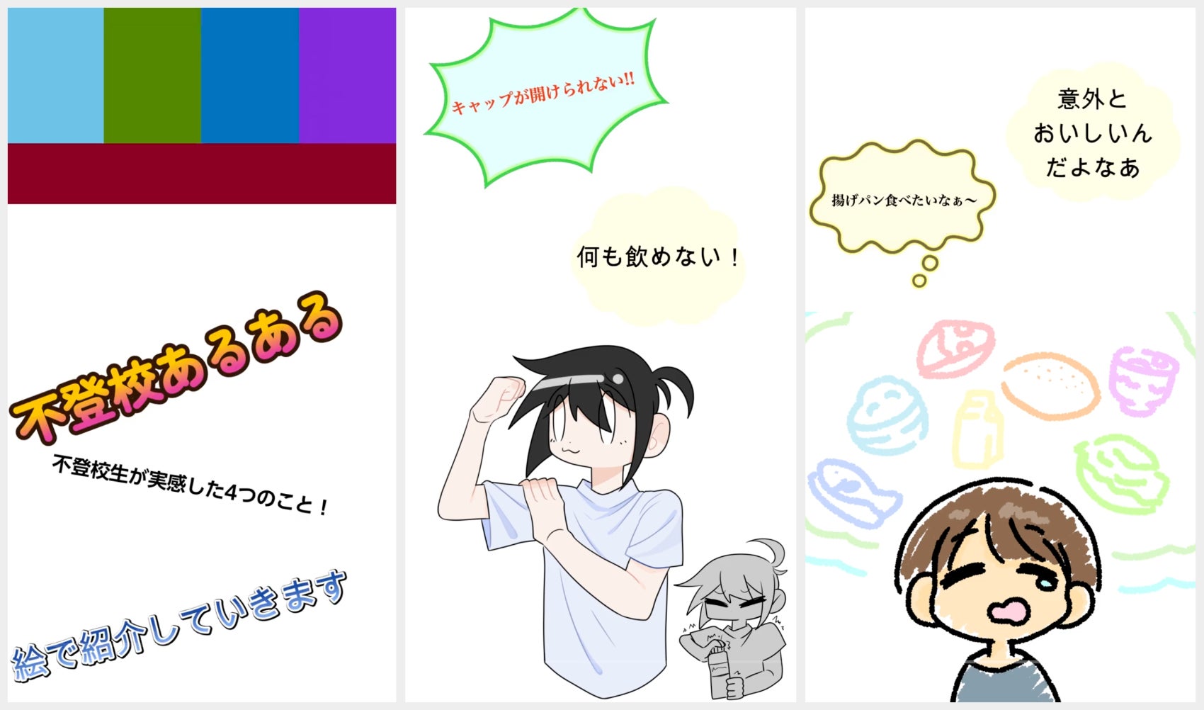 みんな、不登校の子に色々なイメージを持っていたり、逆に知らないことも多いと思う。不登校はこんなふうだよって知ってもらうきっかけになるといいなと思ってこの作品をみんなで作りました!