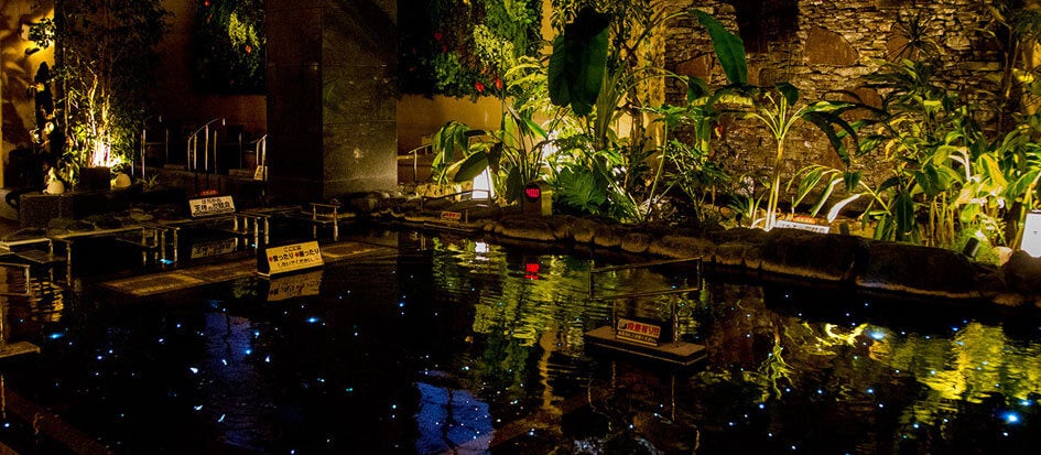 開放感あふれる庭園を眺めながら入浴できる5つの露天風呂には、地下1,100mから湧き出た天然温泉を使用。内湯ではシルクの湯やナノ炭酸泉など、バラエティ豊かなお風呂が楽しめます。岩盤浴エリアでは、ナノ水の水蒸気を発生させる部屋や、天井に星空を映し出す部屋、コラーゲントリートメントランプが設置された部屋など、ユニークな岩盤浴がラインアップ。「食事がおいしい部門」でも第1位を獲得しており、スーパー銭湯では珍しいライブキッチン形式のレストランが人気を集めています。