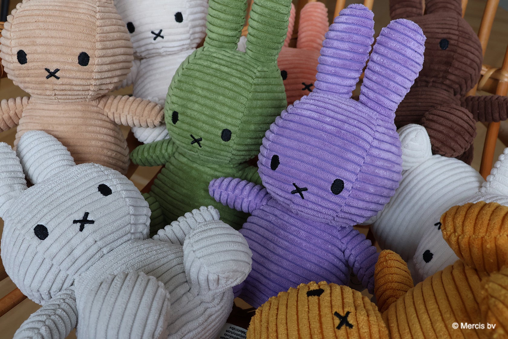 選ぶのに迷ってしまうほどカラーバリエーションが豊富な「Corduroy」シリーズや、もふもふな触りごこちに癒される「Recycle Teddy」シリーズ、繊細に編み込まれた「Organic Cotton」シリーズなど、素材や品質にもこだわったmiffyとその仲間たち。バリエーションゆたかな「miffy collection」は、今も世界中で愛され続け、これからもすばらしい未来をもつすべての子どもたちの「しあわせ」のために、特別な想いをこめて…