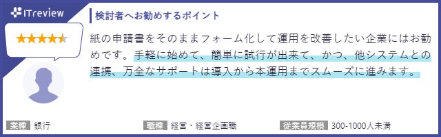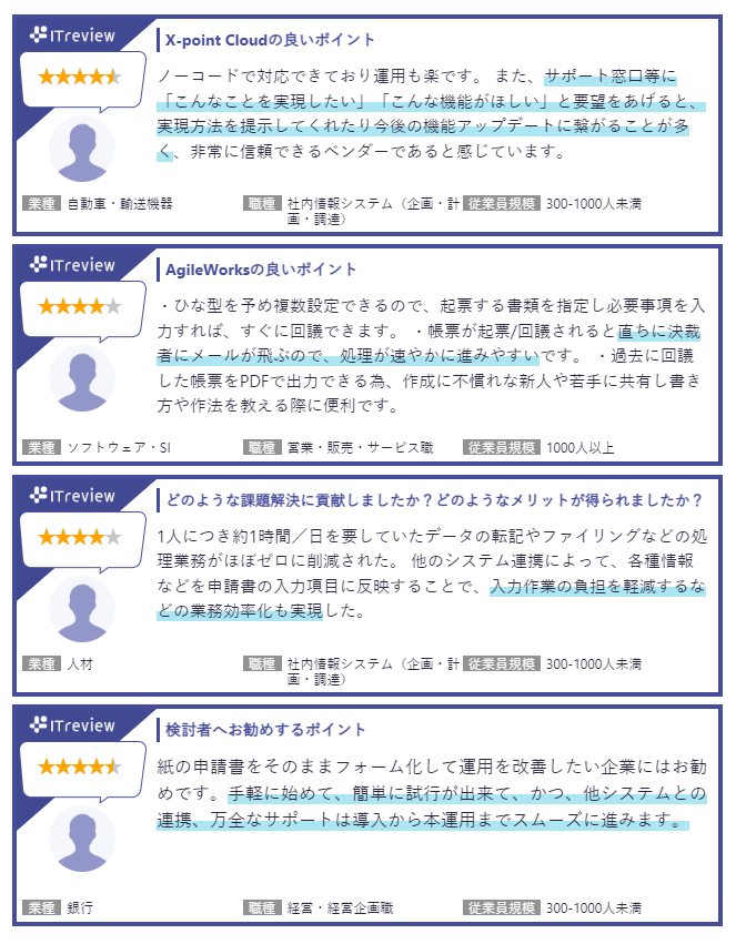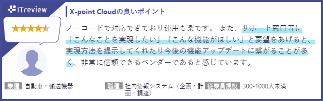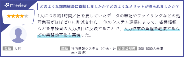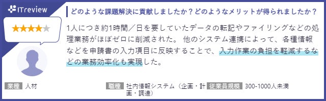 - 「ITreview」に寄せられたユーザーからのレビュー