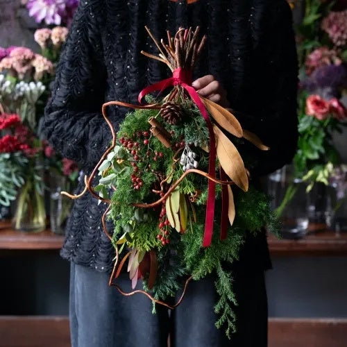 ex. flower shop & laboratoryでは、ホリデームードを演出するクリスマスシーズン限定のスワッグやリースを販売します。