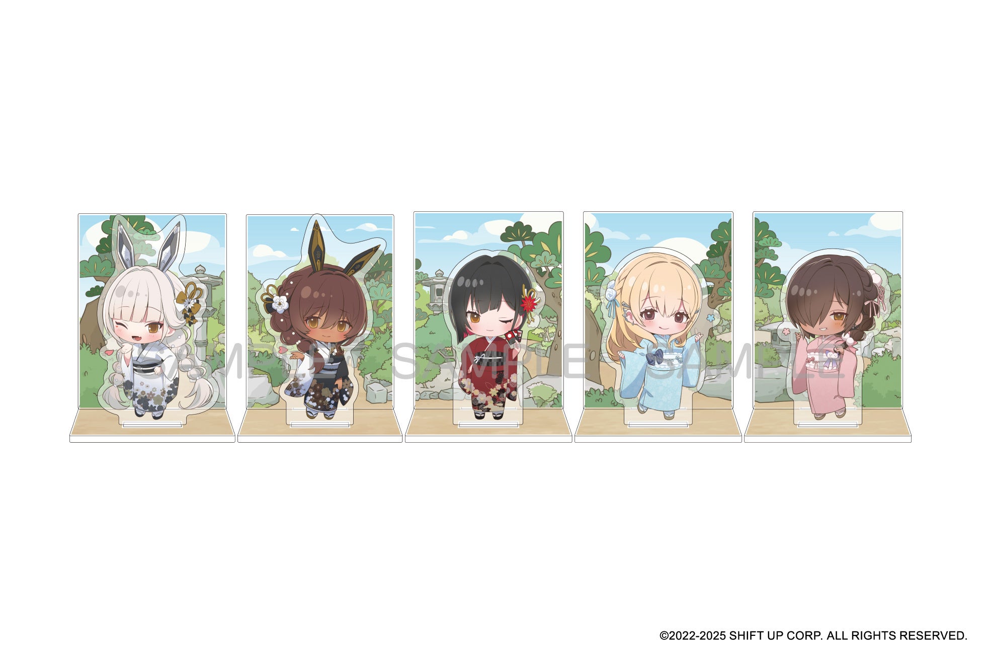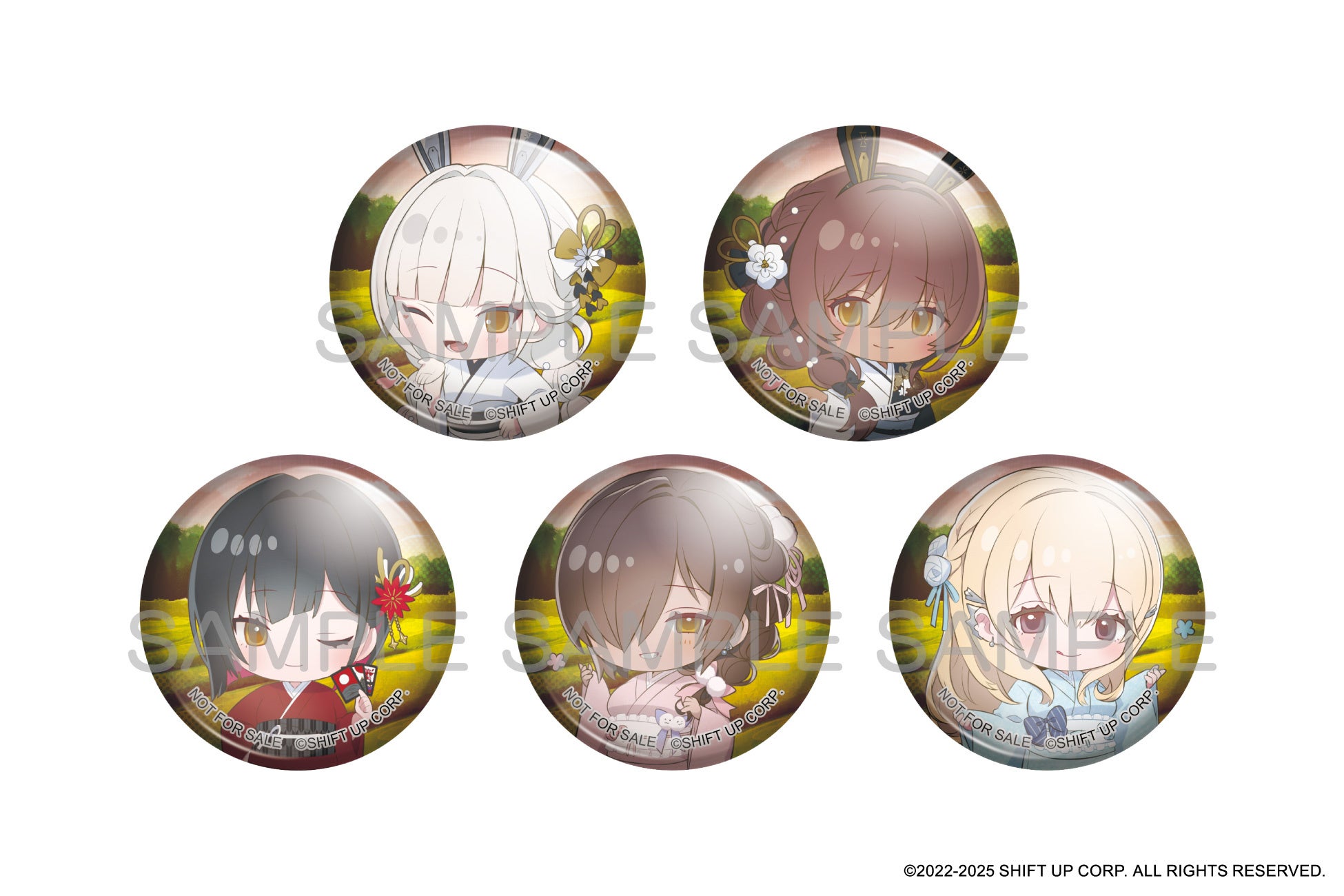 着物姿で金沢観光を楽しむ5人のニケたちが、ミニジオラマアクリルになりました。また、傘の手元で揺れるアンブレラチャームや、定番の缶バッジも登場です。