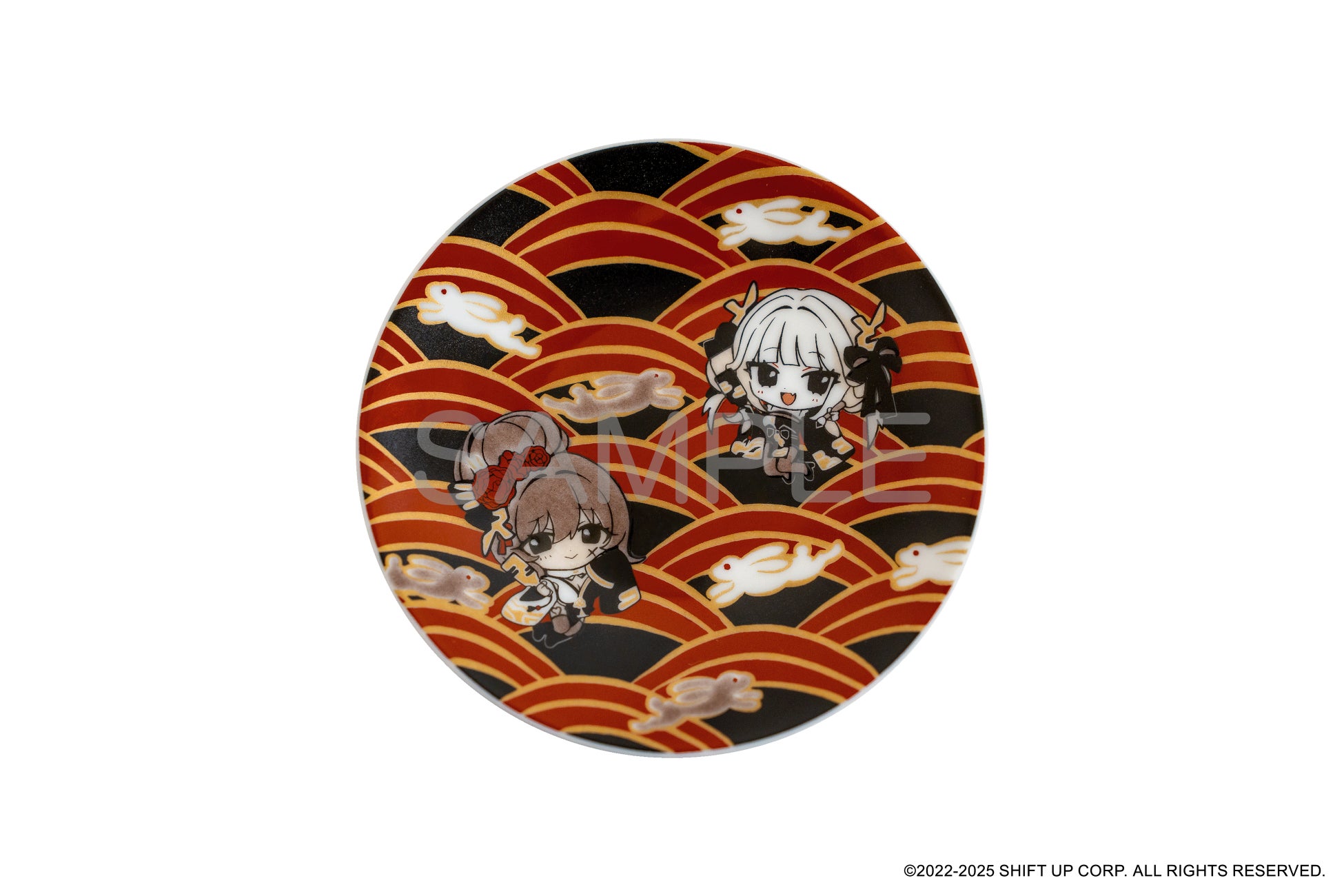 2025年3月に「石川応援企画」として発売された人気のNIKKE×九谷焼シリーズ。今回のイベント開催を記念して、ブランとノワールが1枚の小皿に描かれたデザインで登場です。小ぶりなお皿は実用性もさることながら、立て掛けて観賞用としてもお楽しみいただけます。