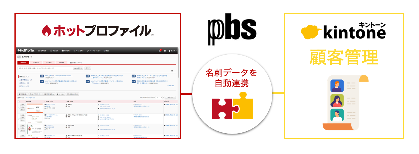 「ホットプロファイル」に登録した名刺情報を「kintone™」に自動連携