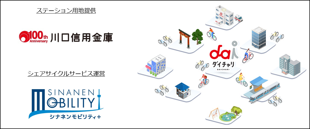 川口信用金庫は、2024年3月に創立100周年を迎える歴史ある金融機関で、これまでも、地域の発展と環境保全に注力し、取り組んできました。そして今回、地域の持続的発展への貢献として、お客様の交通手段の多様化による利便性の向上や、環境に優しい移動手段の提供による環境汚染の予防といった効果を期待され、「ダイチャリ」ステーションを5店舗の敷地内に設置いただきました。