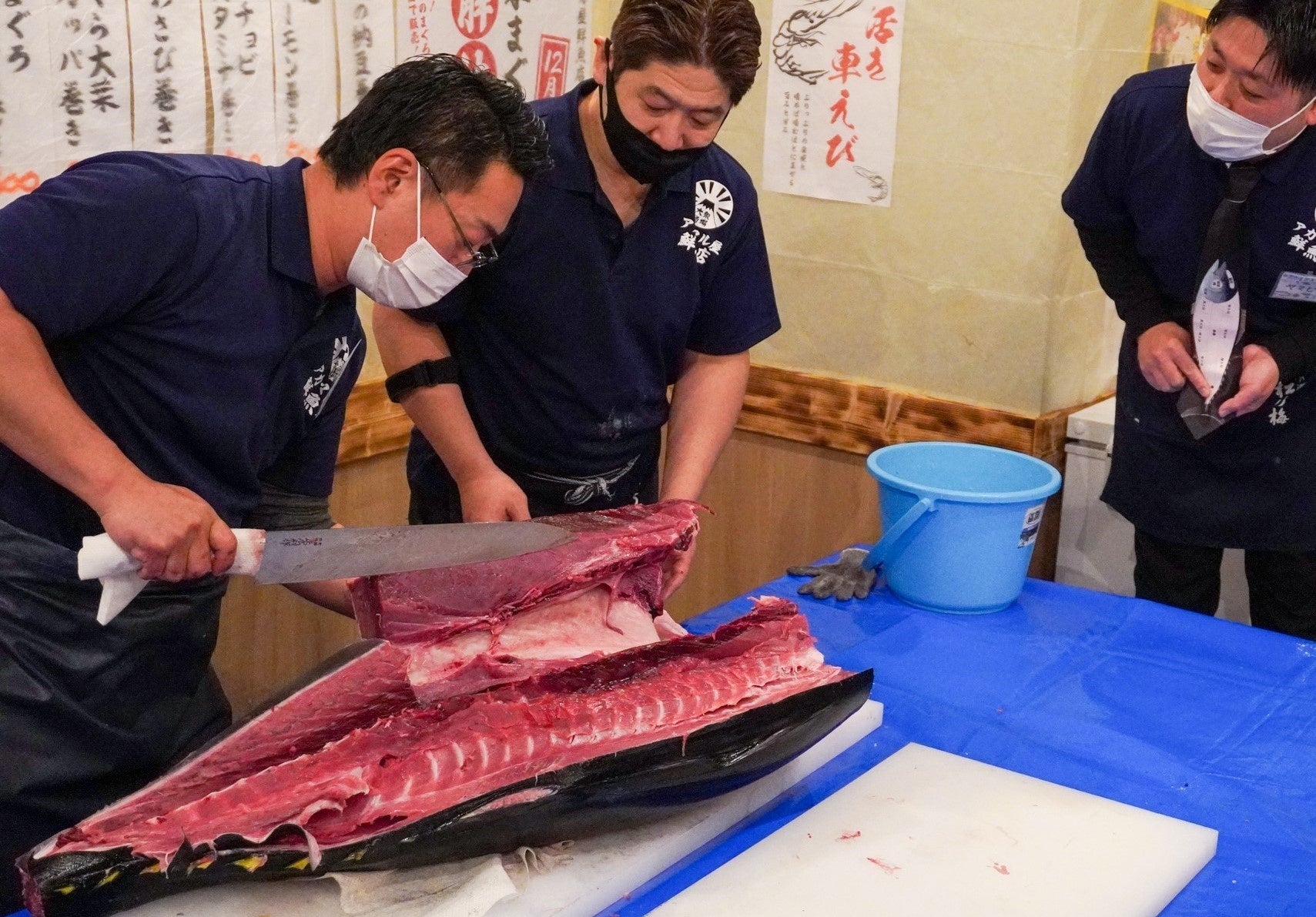 『アカマル屋鮮魚店 大宮すずらん通り店』の人気イベント、迫力満点、生本マグロの解体ショー&即売会を7月29日(土)14時~開催いたします!