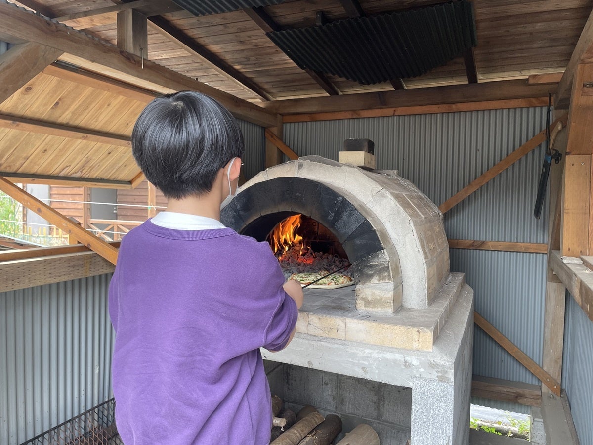 当日は、年少児・小学生8名を含む計17名が竹の間伐作業や、伐採した竹を使ったコップや箸作りの竹細工体験、自然散策、ピザ作り等を体験しました。さらに、地元の方々との交流やJUON NETWORK による間伐の重要性や竹の生態に関する説明を受け、森林保全や環境問題について理解を深めました。