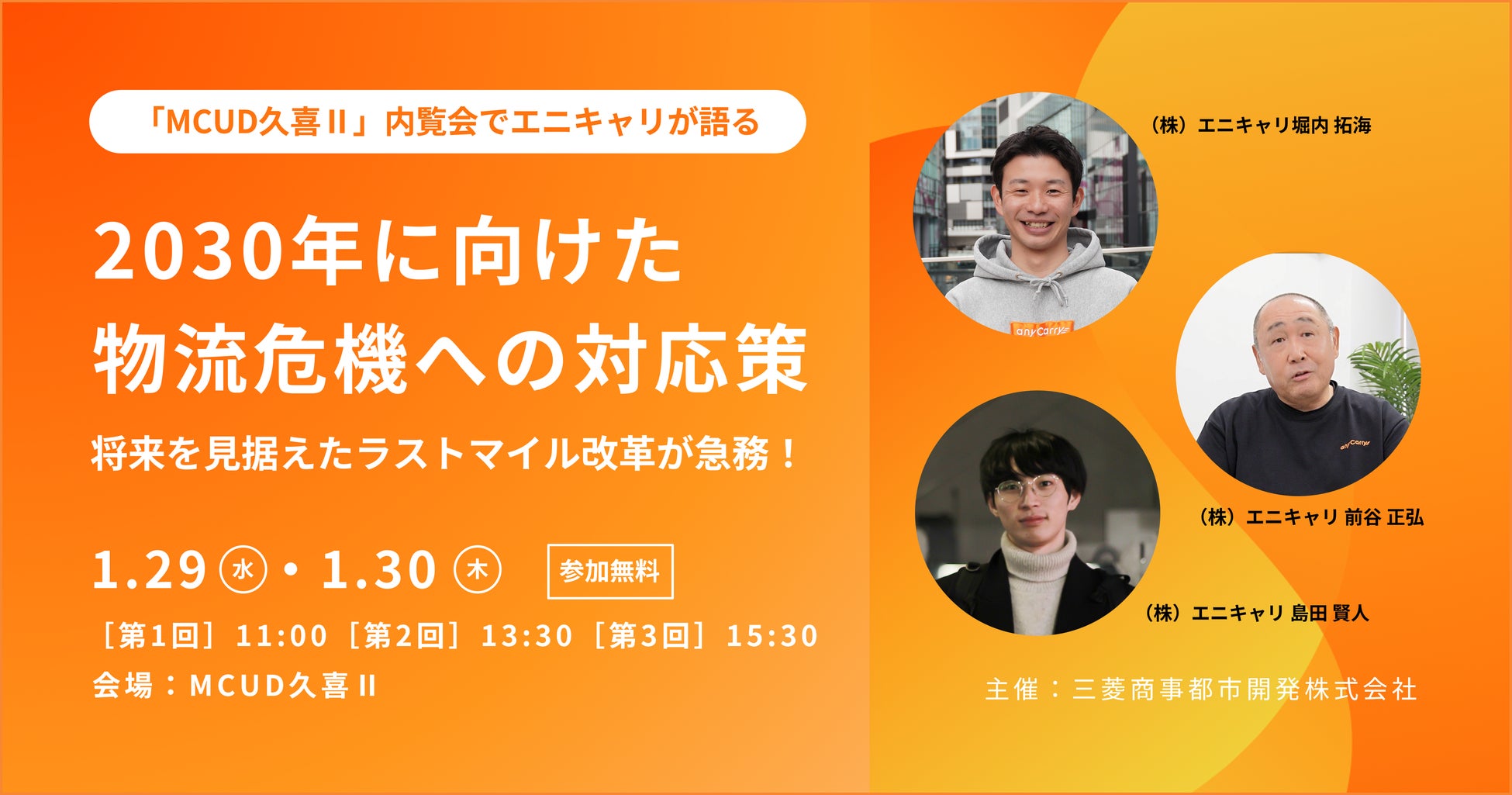 ラストマイル物流に特化した物流ソリューション事業を展開する株式会社エニキャリ(以下エニキャリ)は、1月29日(水)、1月30日(木)の2日間、マルチテナント型物流施設「MCUD久喜Ⅱ」で開催される内覧会のセミナーに登壇します。