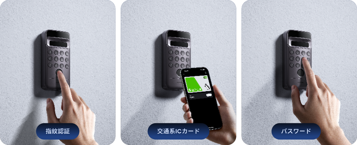 顔と手のひら以外にも、利用シーンに合わせて選べる多彩な解錠方法を用意しました。