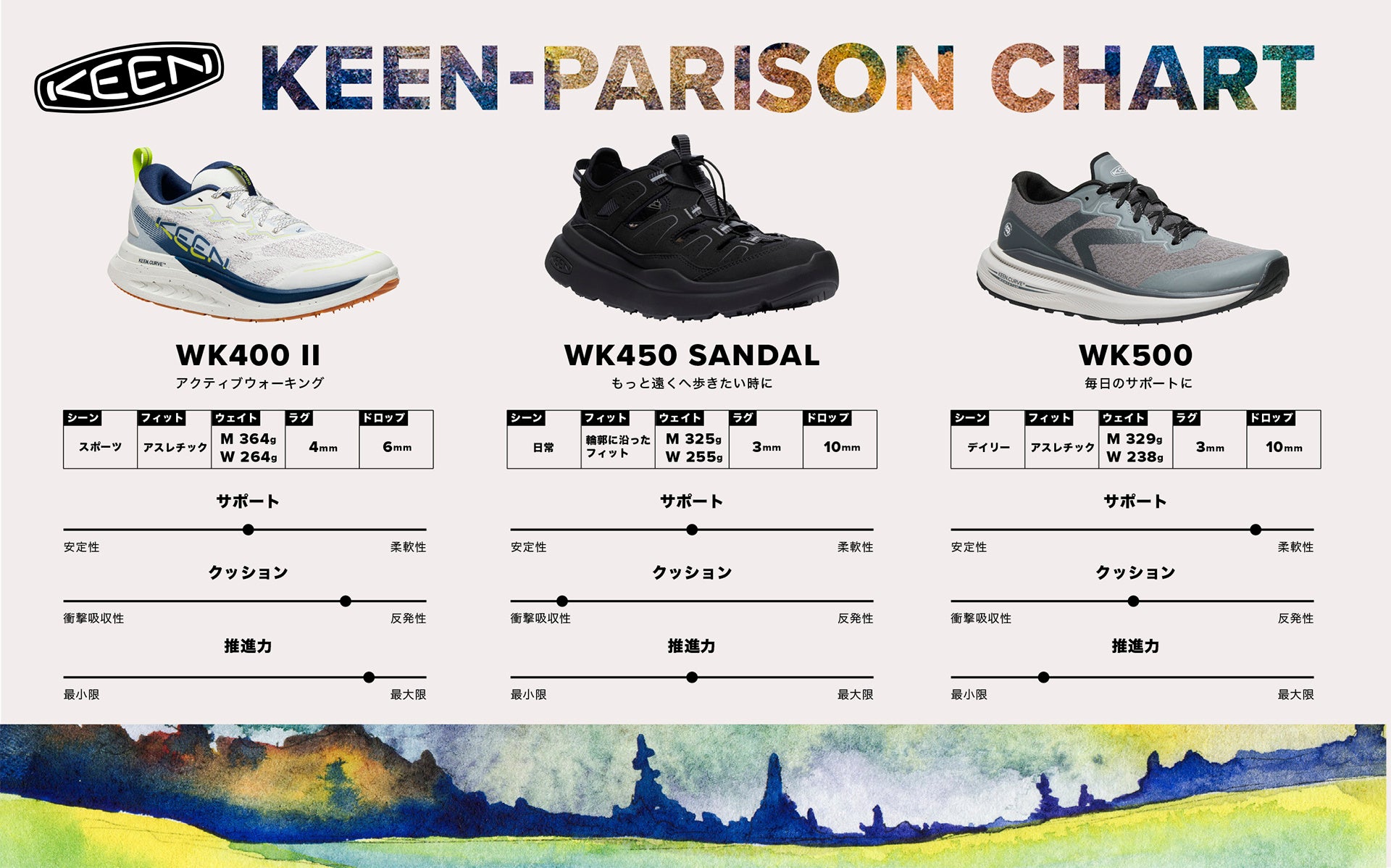 2003年の創業以来、「天井のないところすべて」をアウトドアと定義し、地球環境負荷を低減した製法で革新的なハイブリッドフットウェアを提案しているアウトドア・フットウェアブランド「KEEN(キーン)」は、ウォーキングシューズコレクション〈WK〉の最新モデルをリリースいたします。