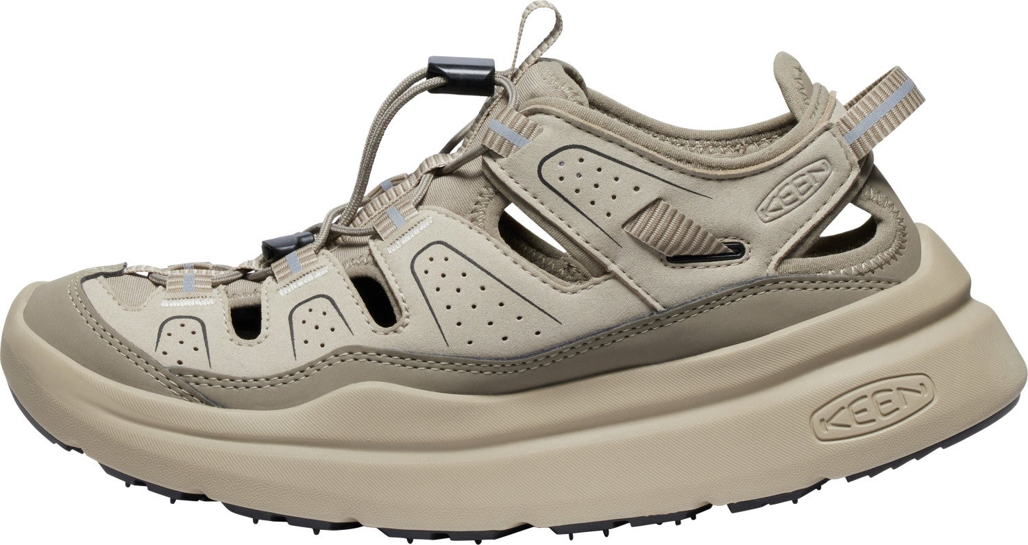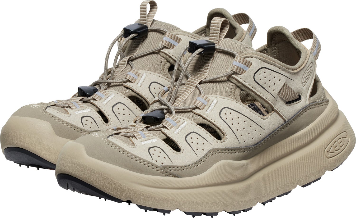 半径450mmのカーブ形状のソール「KEEN.CURVE(キーン・カーブ)」を採用し、サンダルデザインとバンジーコードシステムを取り入れた『WK450 SANDAL (ダブルケーフォーハンドレッドフィフティー サンダル)』には、メンズに新色PLAZA TAUPE/BLACKが加わりました。新色は2月26日より発売中。