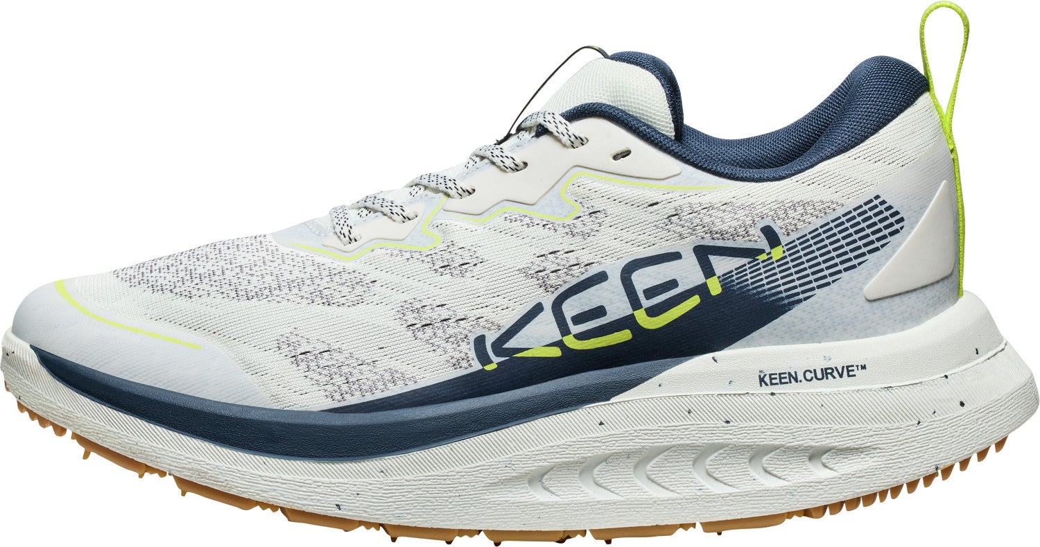 WKコレクションの最大の特徴は、歩行時の自然な重心移動をよりスムーズにする独自テクノロジー「KEEN.CURVEテクノロジー(キーン・カーブテクノロジー)」。一定カーブ形状の「CONSTANT CURVE GEOMETRY(コンスタント・カーブ・ジオメトリー)」と、フルレングスのナイロン製プレートがカーブを一定に保つ「PLATE TECHNOLOGY(プレートテクノロジー)」、そして、高反発とクッション性を両立し、歩行時の快適性と推進力を向上する「HIGH-ENERGY MIDSOLE(高エネルギーミッドソール)」を組み合わせ、まるで前方へ転がるような、新感覚な歩行体験を実現しました。