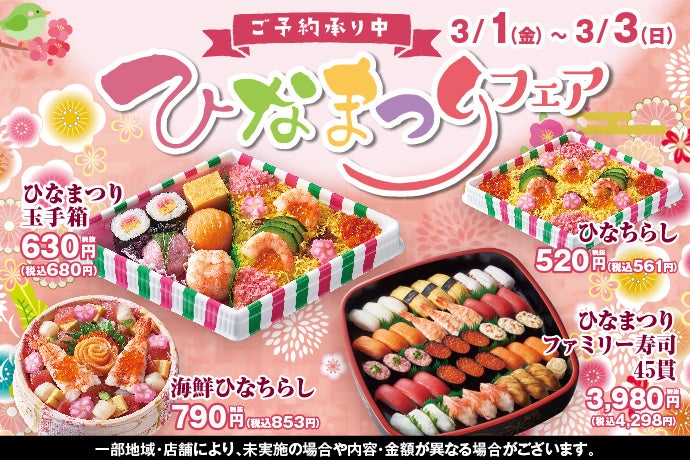 【ご予約承り中!】3/1(金)~「ひなまつりフェア」開催!小僧寿しでは、『ひなまつり』にぴったり♪華やかで、かわいいお寿司をご用意いたしました!