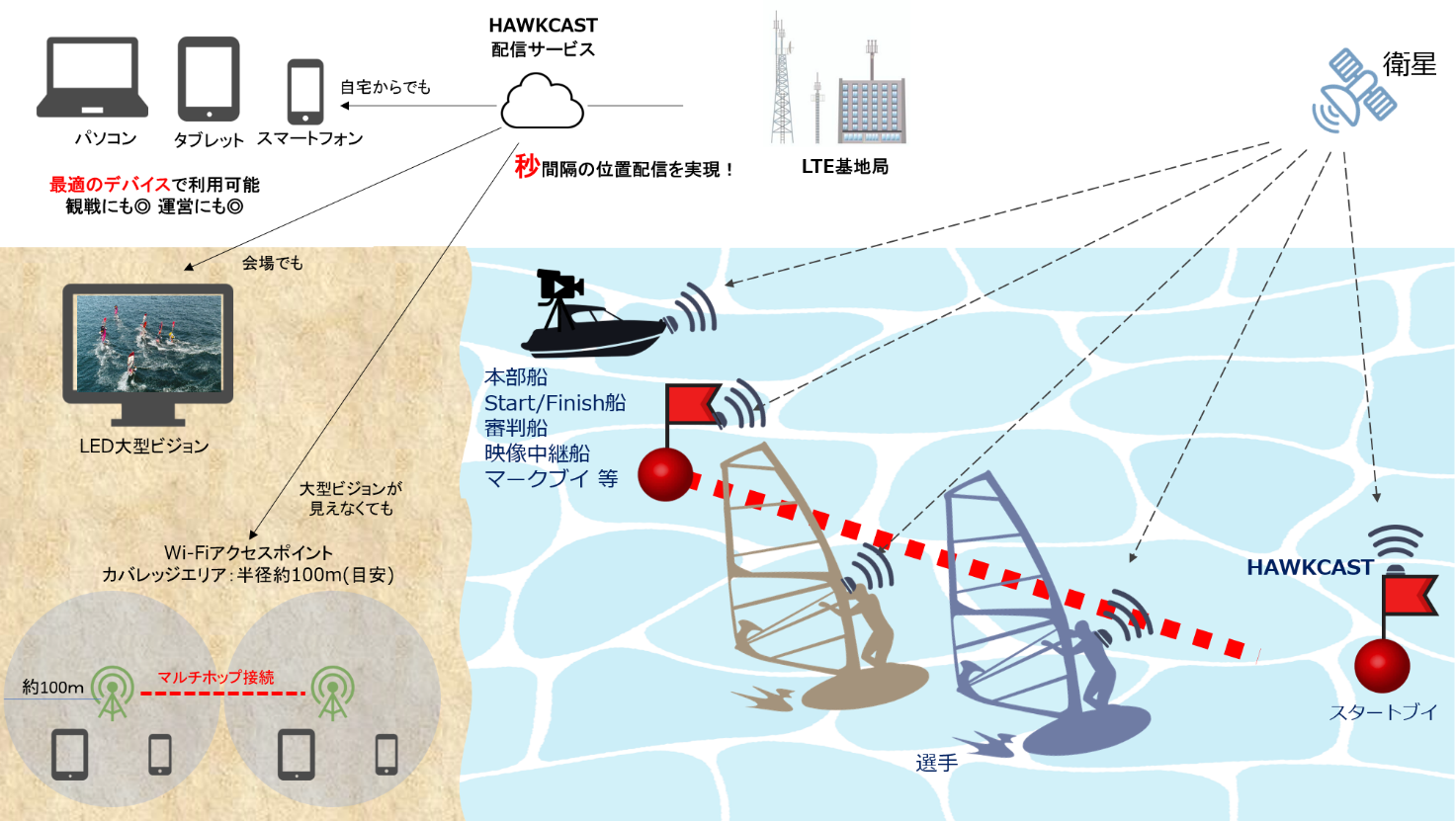 N-Sports tracking Labは、「HAWKCAST」が水上スポーツやロードレースなどの競技観戦をより一層楽しくさせる、大会運営者の課題解決や選手強化にもつながる技術・事業であることを信じて、各種大会運営をサポートしていきます。