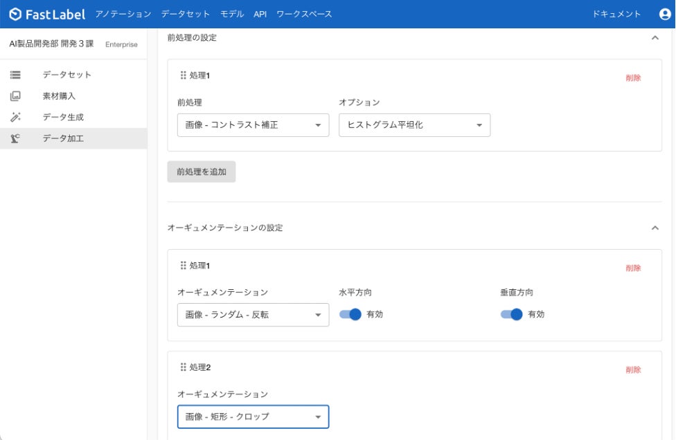 データセット機能において、前処理やオーギュメンテーション、後処理ができるようになりました。