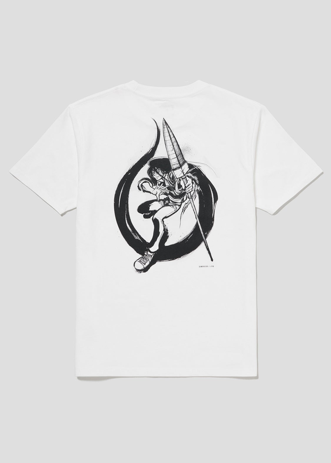時代を越えて愛され続ける少年漫画『うしおととら』より。1996年の連載終了から時を経て、今回のコラボレーションのために描き下ろされた作品。迫力ある「とら」と「うしお」のアートワークを表裏にプリント。