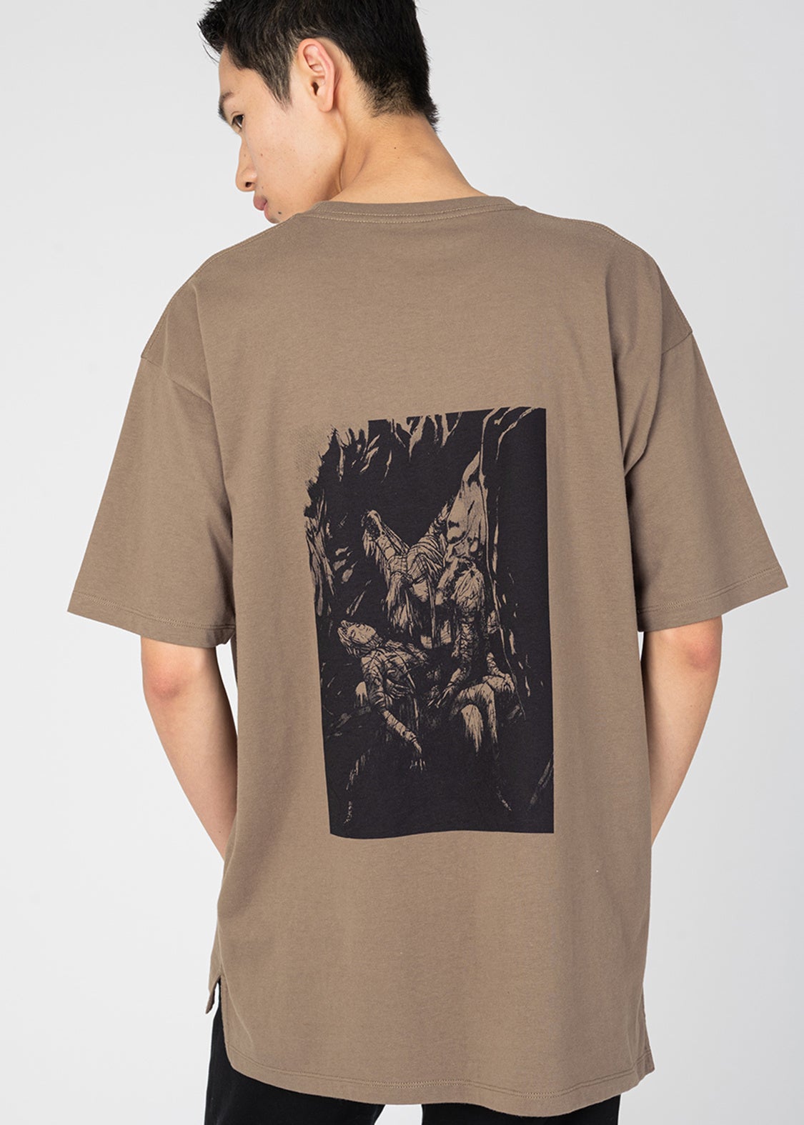 風合いが良く、伸縮性のある天竺を使用したTシャツ。少し長めの後ろ身頃やドロップショルダーなど、ルーズなシルエットに仕上がっています。