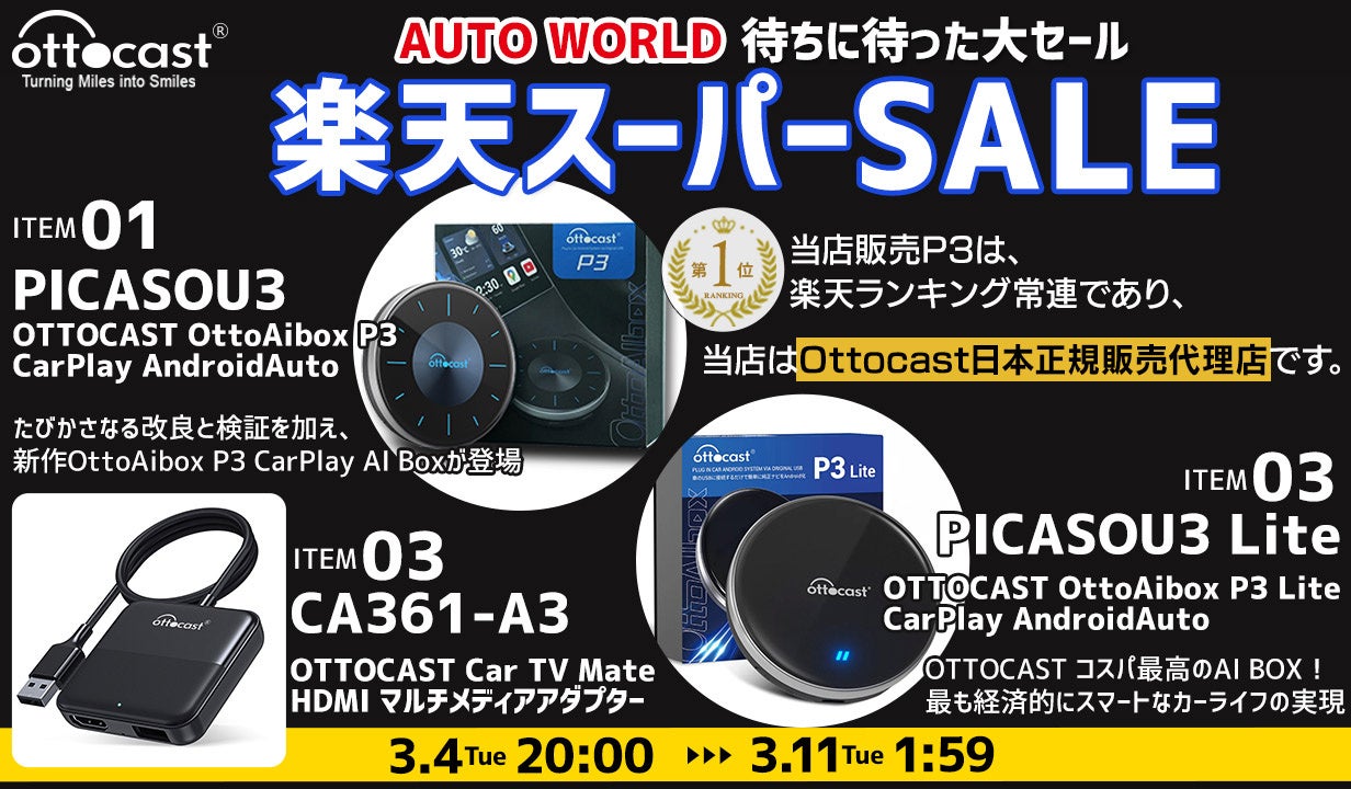 AUTO WORLDの【楽天スーパーSALE】楽天ランキング常連!当店も販売中★あの人気の商品が「期間限定★お得価格」で販売中!※当店はOTTOCASTの正規代理店です