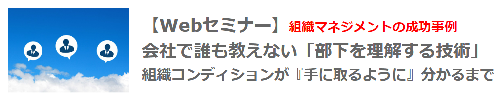 【Webセミナー】5月10日(火)12:00開催!組織マネジメントの成功事例会社で誰も教えない「部下を理解する技術」~組織コンディションの見える化でマネジメントの一助に~