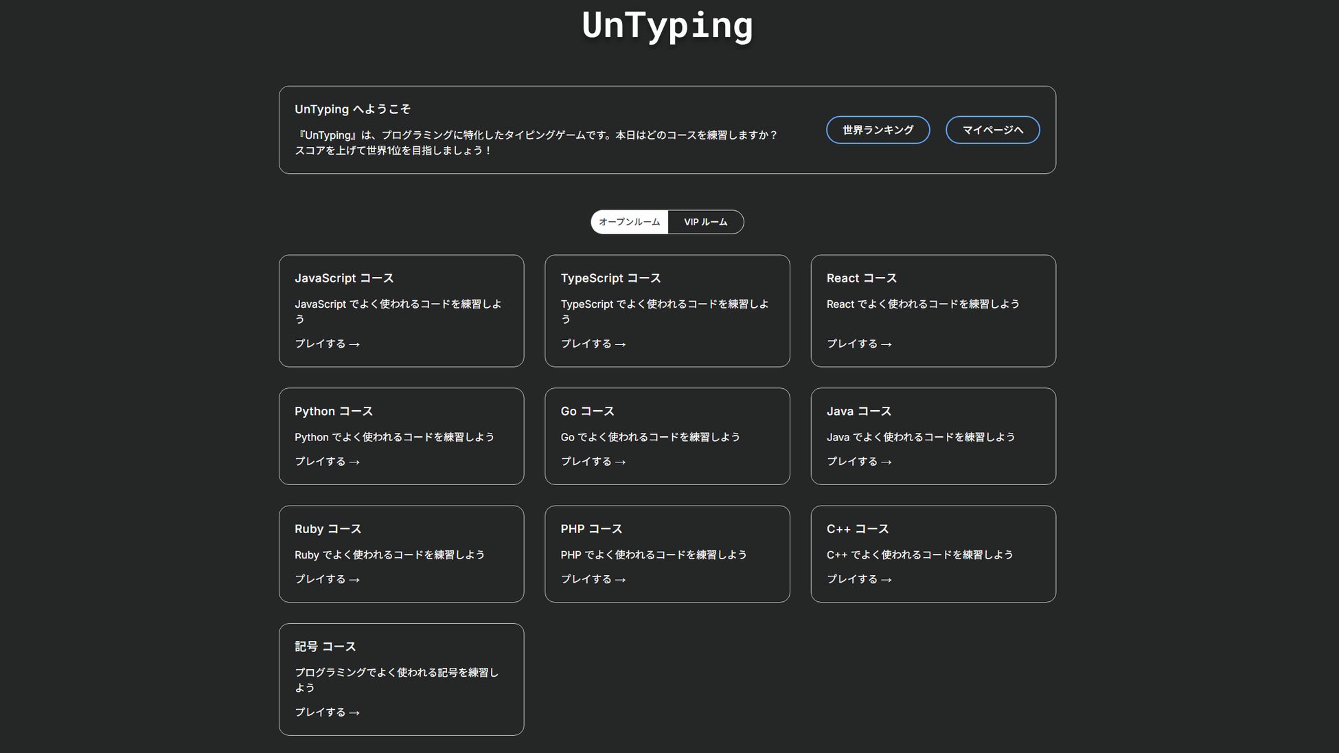 UnTyping は、プログラミングの練習に特化したエンジニア向けのタイピング練習ゲームです。