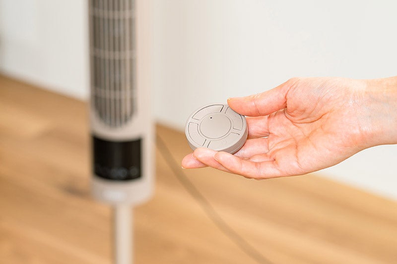付属の専用リモコンで遠隔操作が可能。風量やタイマーも、離れた場所からサッと設定できます。