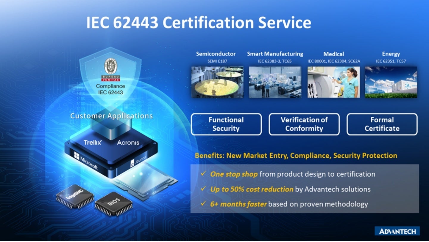 Advantech Co., Ltd(本社・台湾、TWSE: 2395、以下 アドバンテック)は、 IEC 62443および関連規格に準拠したエッジコンピューティング機器の認証ニーズに合わせたIEC 62443認証サービスの開始を発表しました。アドバンテックは、ソフトウェア保護を強化し、テストと認証の効率を大幅に向上させるための包括的なソリューションを提供します。