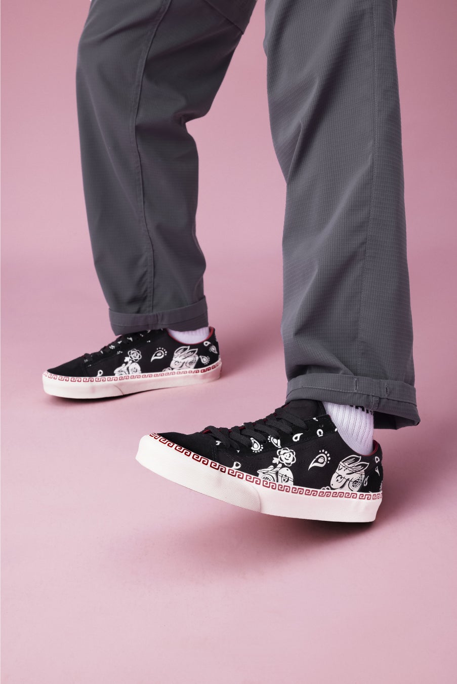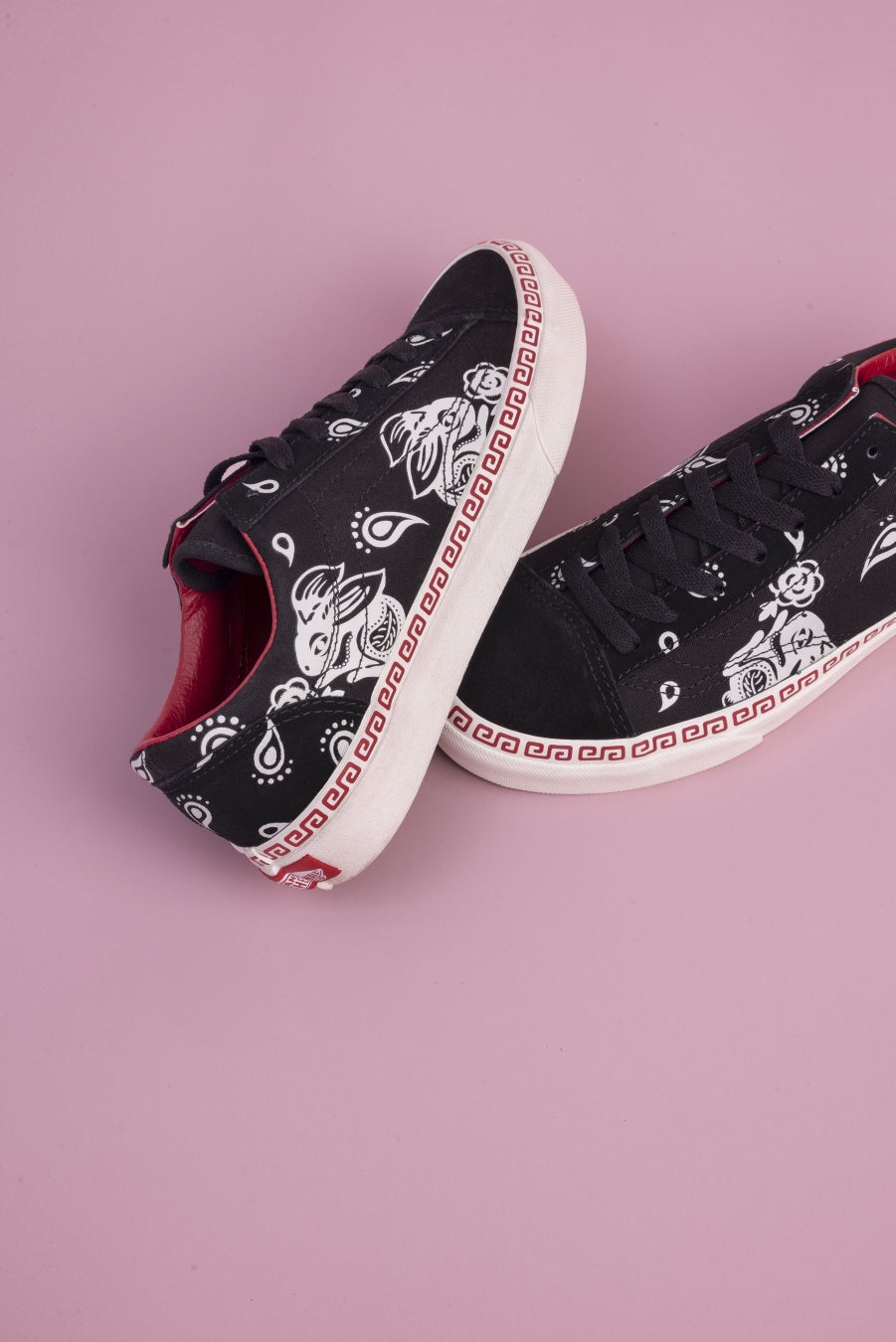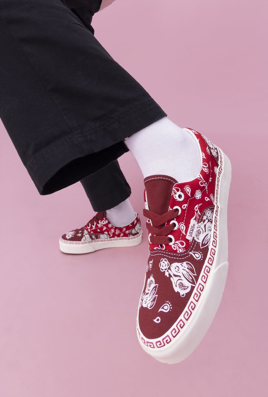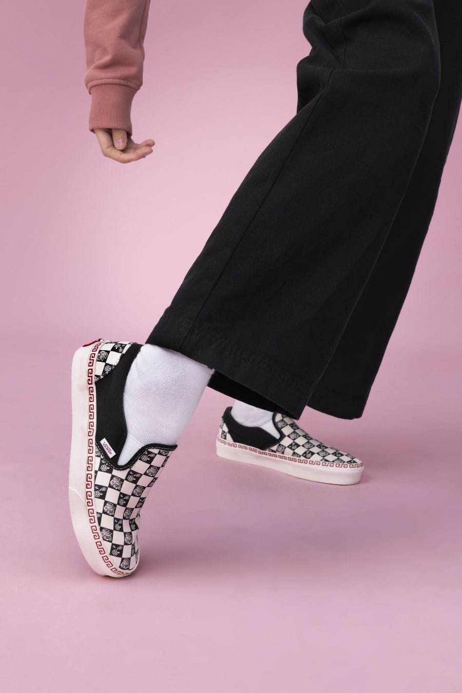 2023年の干支である“兎”とChinese New Year(旧正月)にインスピレーションを得ており、中国テイストのパターンやデティールが特徴です。アジアンテイストで描かれた兎のイラストをキーモチーフに、生命力や霊魂にルーツも持つとされるペイズリー柄、Vansのアイコンでもあるチェッカーボード柄へそれぞれ落とし込んだアッパーデザイン。すべてのフットウェア共通で、フォクシングラインは縁起物とされる「雷文」模様で表現されており遊びゴコロあふれる細かなデティールとなっています。