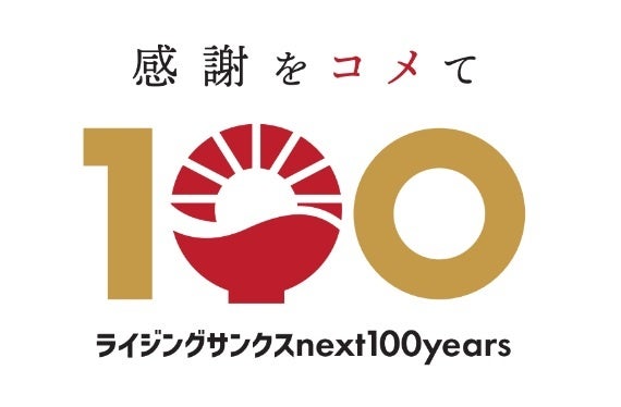 お客様に感謝の気持ちを表すと同時にライジングサン(日の出)のように、今後の100年も日々お米を使ったお菓子をつくり続け、皆様に愛される企業を目指すという想いを込めたスローガンです。
