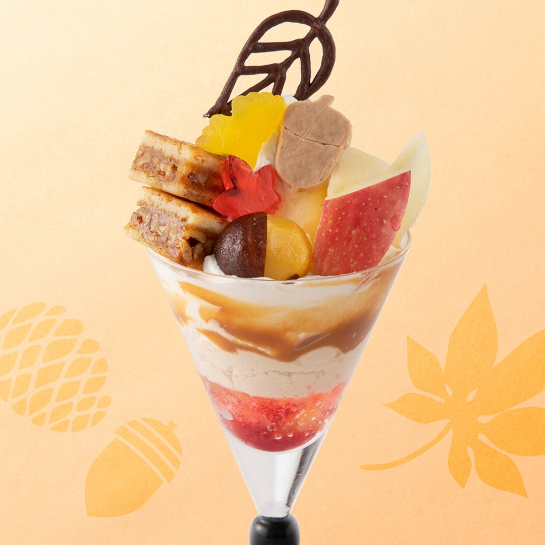 秋のやさしい色合いと、秋の味覚を閉じ込めた季節限定のパフェをご用意しました。