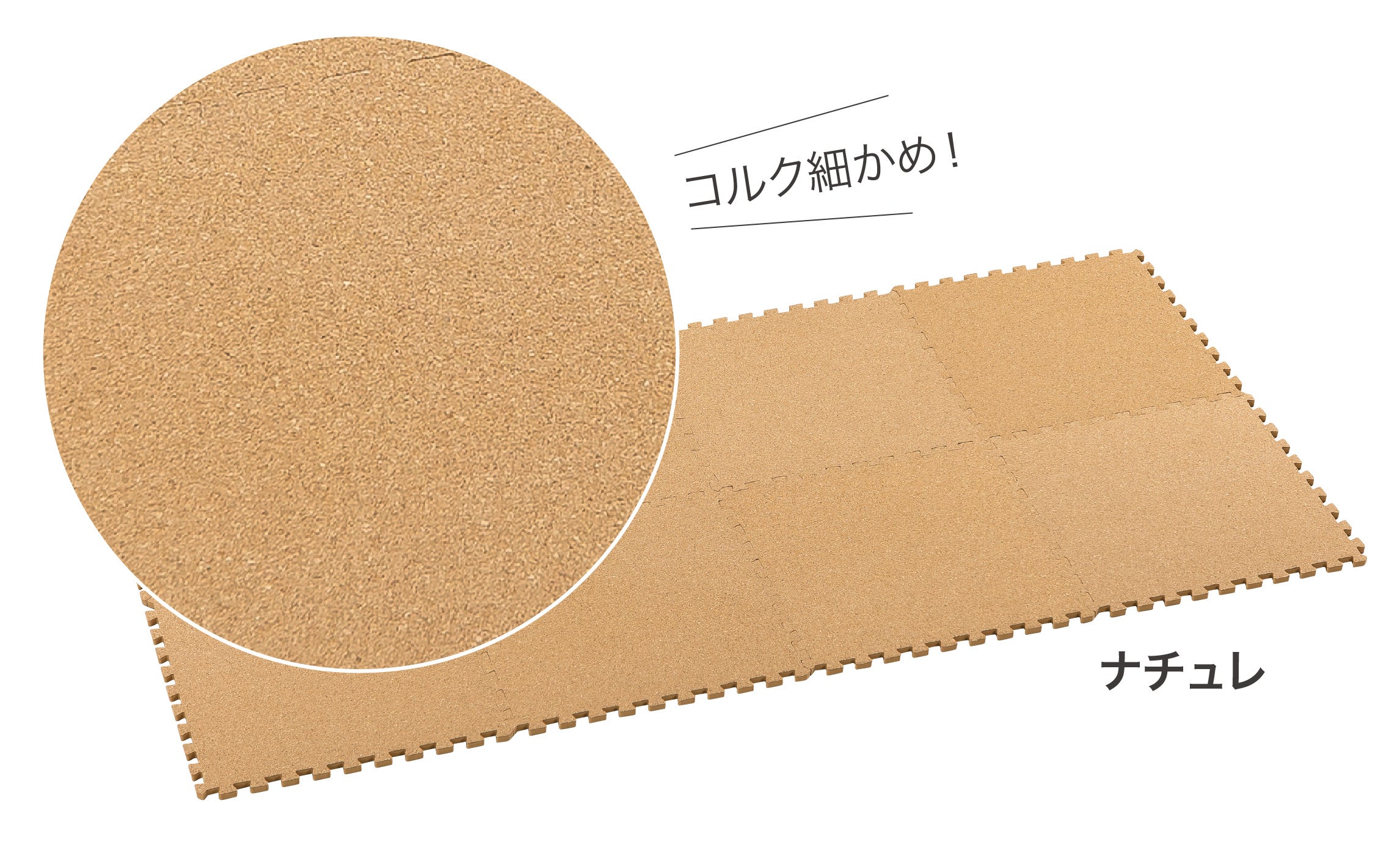 コルクが粗めの「やわらかコルクマット 8枚組」は、お部屋に敷いたときにコルクの風合いをより強く出したい方におすすめです。