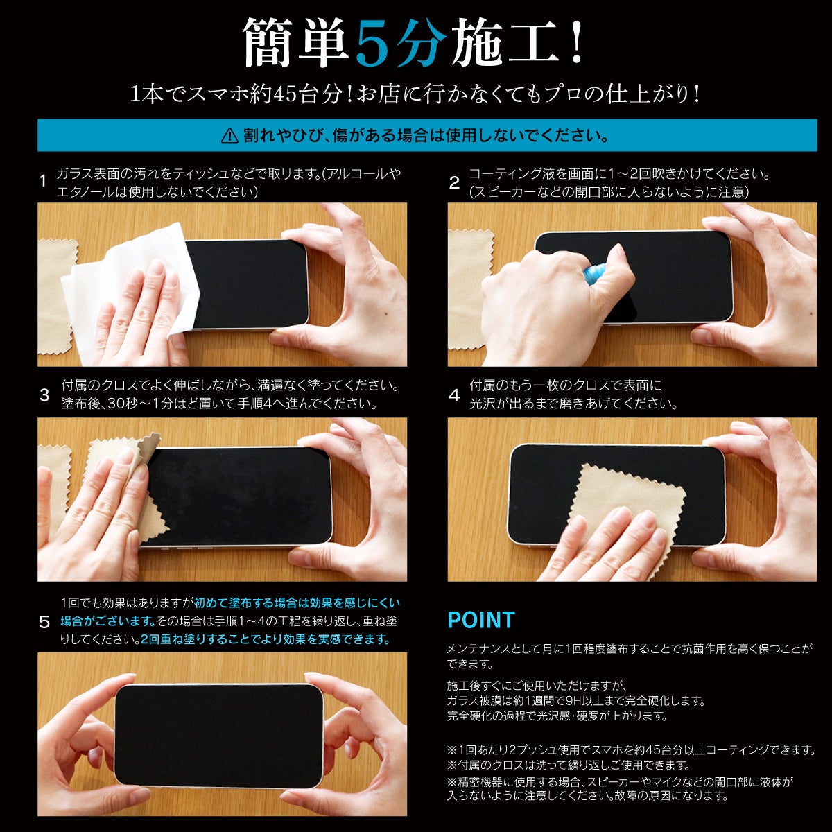 スマホ画面の場合、約45台分(1台分2プッシュ)施工できる大容量5ml。