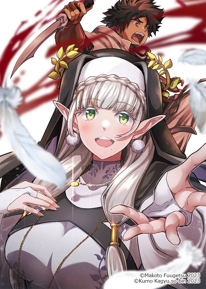 早くも、発売日が2023年12月22日と決定している『ブレイド&バスタード』コミックス第2巻のカバーイラストを先行公開しました。第2巻のカバーイラストには神に仕えるエルフの聖職者・アイニッキと、駆け出しの盗賊・ララジャが描かれます。