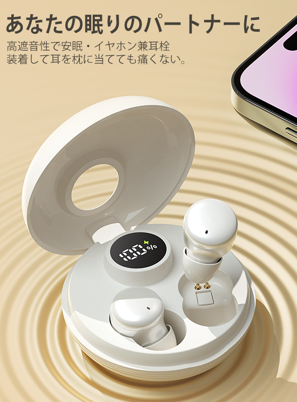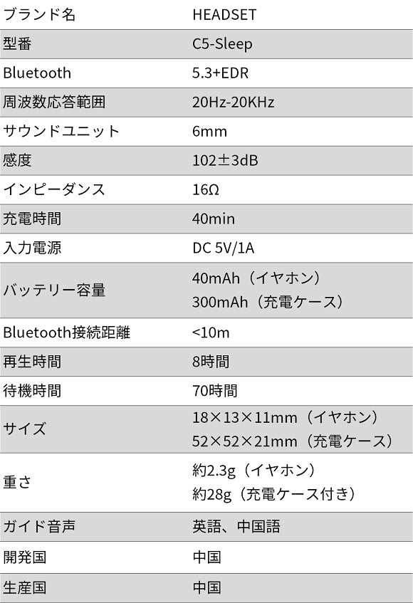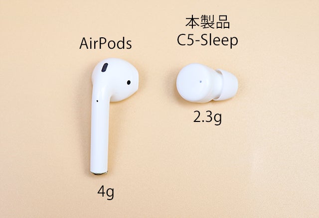 「C5-Sleep」は寝ながらでも使いやすい新しいタイプの睡眠用イヤホン、いわゆる「寝ホン」です。普通のイヤホンと比べて、ミニ型のため、横向きで寝ても、長時間つけていても耳が痛くなりにくく作られています。