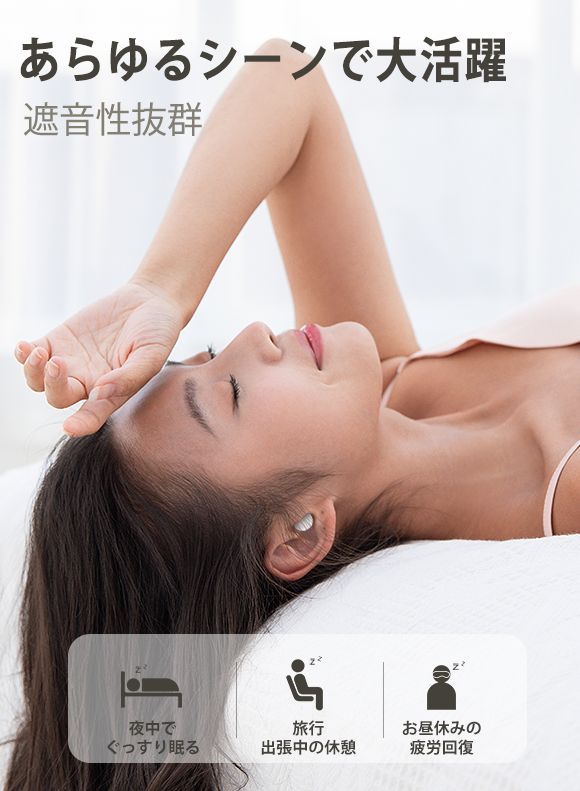 「C5-Sleep」は肌に優しい柔らかな素材を採用し、耳栓のように装着するため、フィット感に優れ、遮音性も高く、周囲の騒音やいびきを遮断し、ぐっすり眠れます!