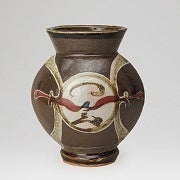LOT.136 河井 寛次郎「草花圖扁壷」