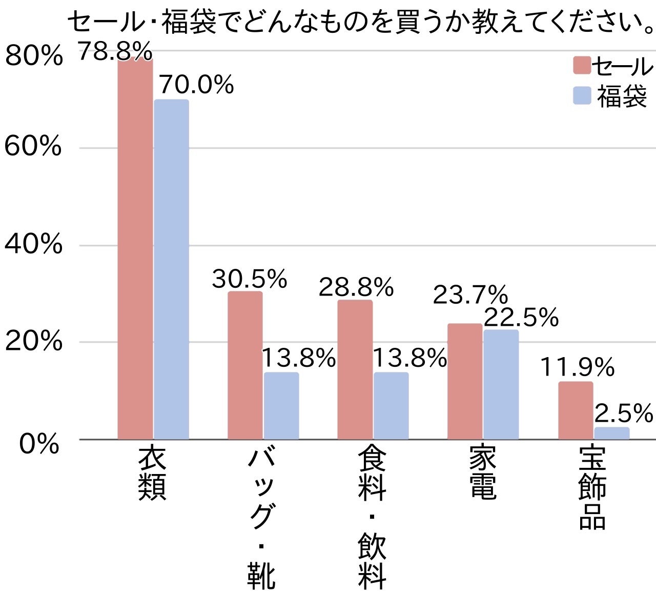 が並び、全て1割未満で、どの項目もセールで買う方が福袋より多い結果となりました。