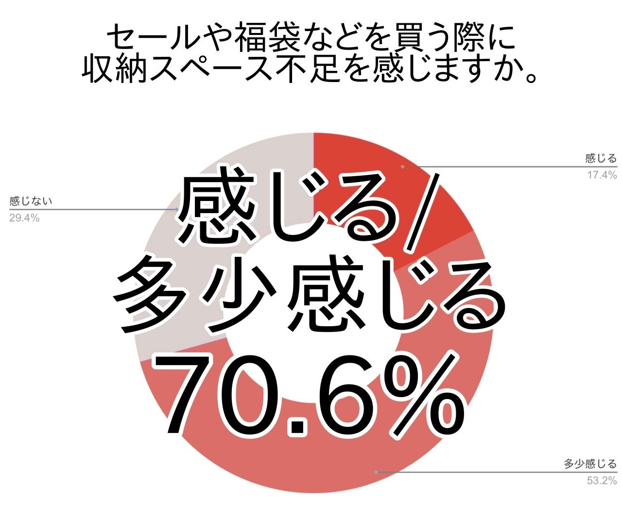 そこでアンケートでは、セールや福袋の購入などでモノが増え続けている気がするか尋ねました。