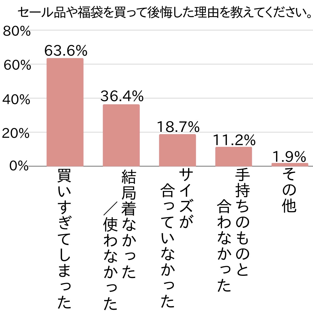 セール・福袋を買ったときの後悔として「買い過ぎたことの後悔」が特に多いことがわかりました。