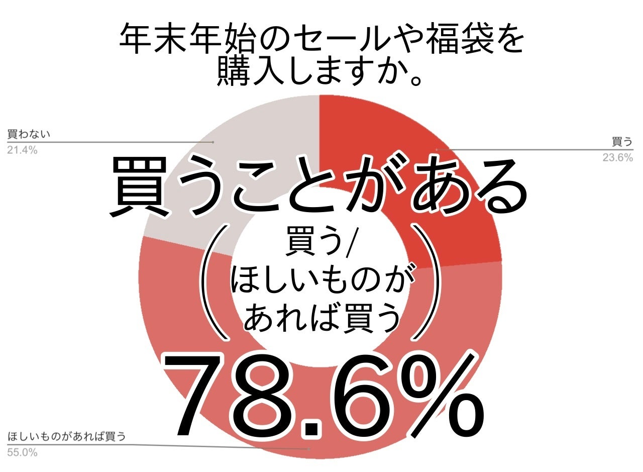 アンケートでは、年末年始のセールや福袋を買うことがあると答えた方は約8割(関東78.6%・全国79.0%)でした。