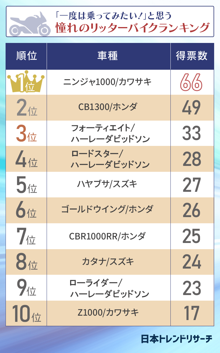 日本トレンドリサーチ・一度は乗ってみたいリッターバイクに関する調査